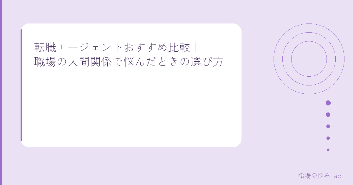 「職場の人間関係がつらすぎて転職したい」「でも転職エージェントって種類が多すぎて、どれを選べばいいかわからない」……そんなあなたの気持ち、すごくわかります。