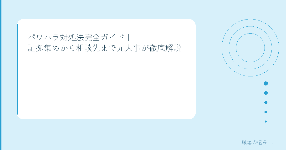 パワハラ対処法完全ガイド|証拠集めから相談先まで元人事が徹底解説